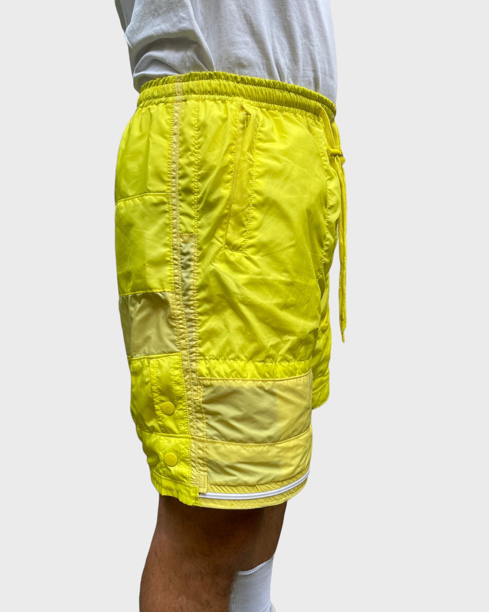 - Fabric: lightweight, reworked from two windbreaker jackets